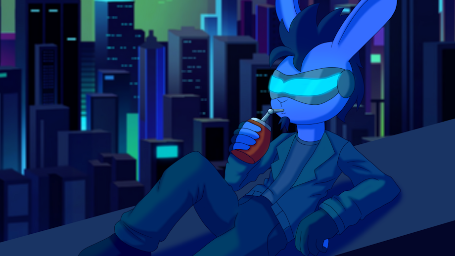Back in March was my friend Sp3ctrum's birthday, so I drew his main sona chillin with some mate on a city rooftop.