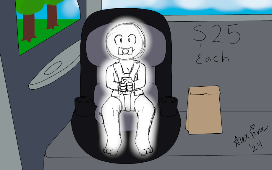A YCH of a little one in the car being happy after whoever was driving just got them McDonald's (or another favorite fast food place) and a juice box. Any species, any gender, pretty customizable. DM me here or on Discord to claim a spot.