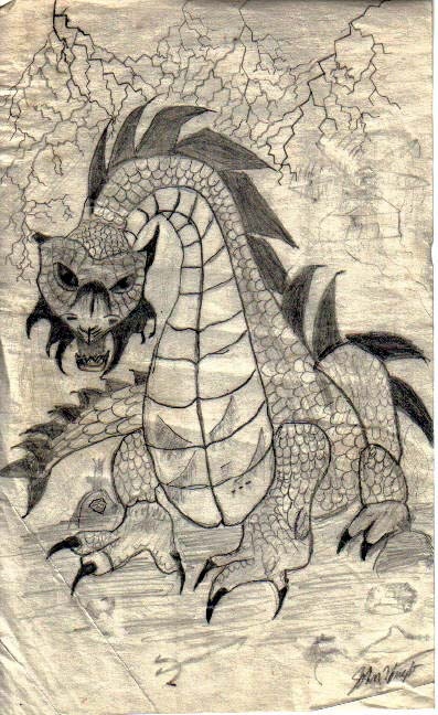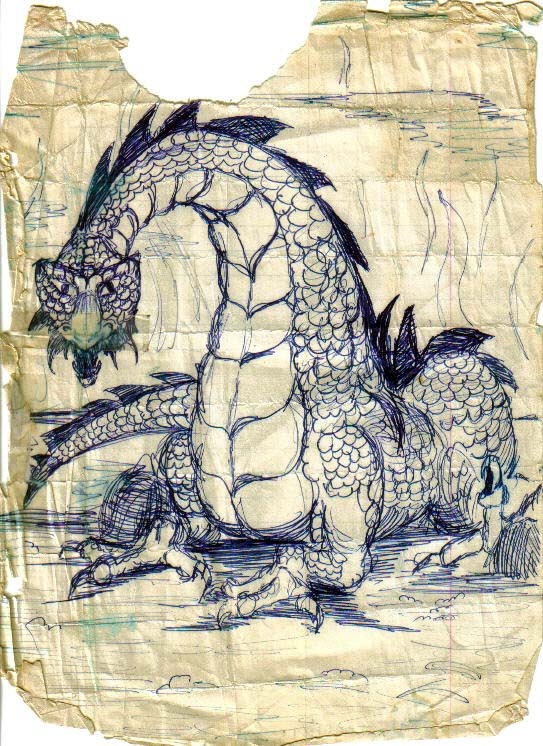 Did this back when I was in grade school during art class. Teacher accued me of tracing the drawing I was freehanding from - which is the next pic in this set. Original pen and ink was done by my mom, the year I was born. Paper I used was a little more than a third the size of the one of my moms. You can obviously see where I ended up truncating a few spots and adding my own embellishments.