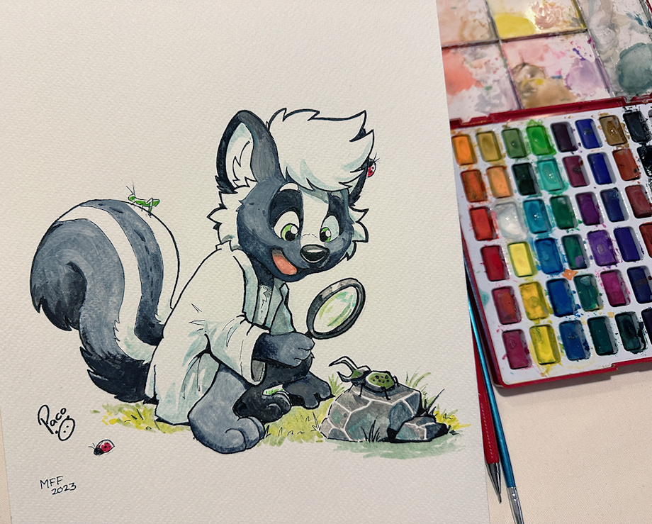 Picture for Toby the Skunk Kit, during MFF 2023's Artists Alley.