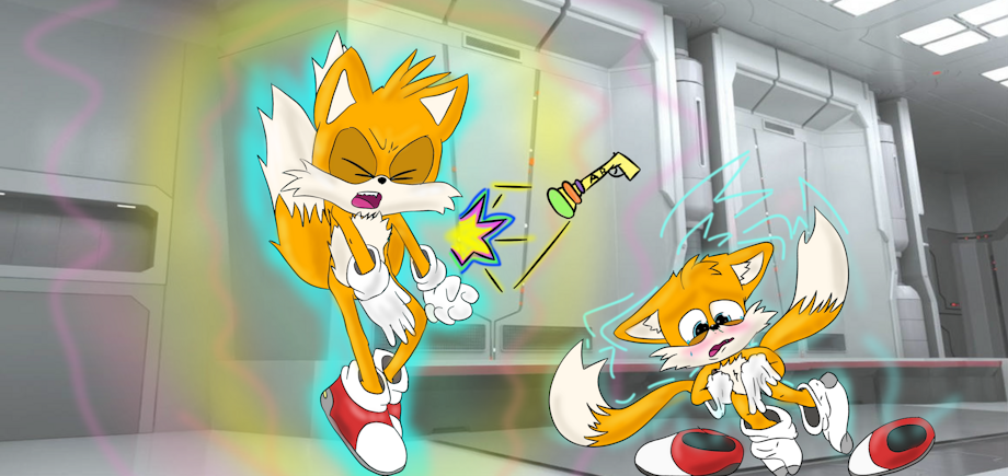 Tails snuck into Eggman's lab, but was quickly met by some new security measures.....It's ok, he'll grow back up in no time :3