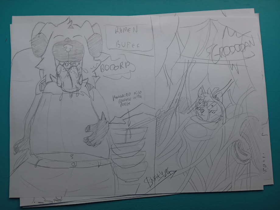 Different little comics i did featuring the micro fan aswell in various scenario involving vore and littering, vore in a noodle restaurant and tongue study, the micro always ending up in some mushy pit , a stomach filled with food !