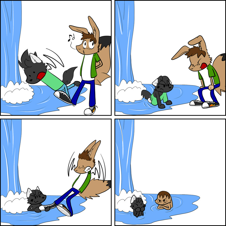 It's - guess who! - toyapup, with a commission about - guess what! - age regression. Toya and his wolfrabbit friend found the fountain of youth, and Immy thought it'd be hilarious to dunk him in.