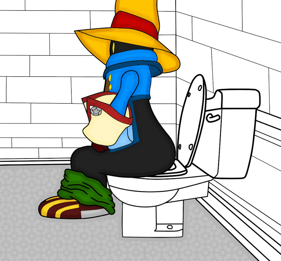 Hidy ho! Here's an art done by me of black mage, or vivi, or however you call him depending on what game you play; don't correct me in the comments I won't read it lol. But here's vivi pooping in a gas station bathroom and he's stinking it up in there ;3