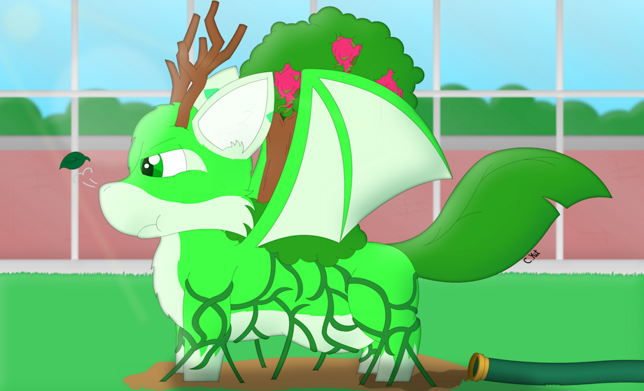 Its Earth Day! So you know what that means. Time to make our friend (Aka: Me. Also Aka, Still stuck as a dragon.) into a plant for today! Though I'm still havn't fixed some of the other changes from last month! I'm still a dragon and I'm still trying to work off this weight from Fat Tuesday a few months ago. At least, I'm not a giant anymore, but now I'm regaining my fatness because I can't keep control of my Photosynthesis. >.<