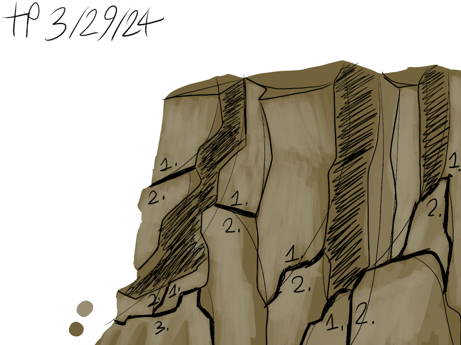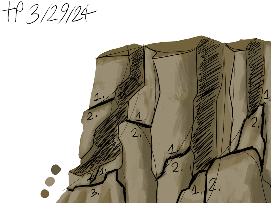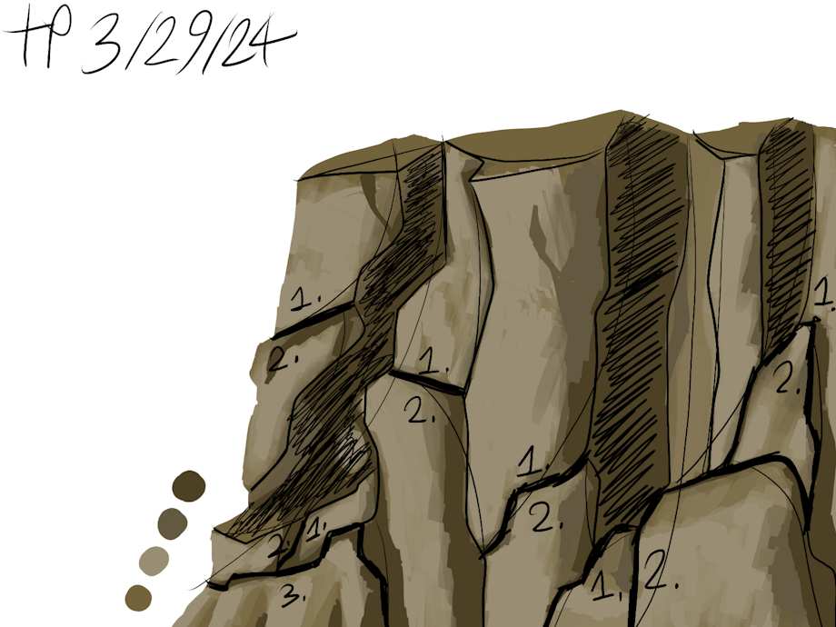 Recently, I think I've found a better, yet decent, approach for sketching rocky surfaces now: