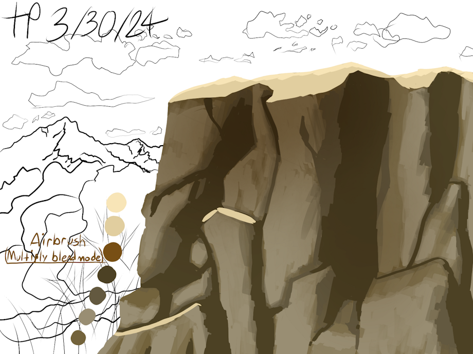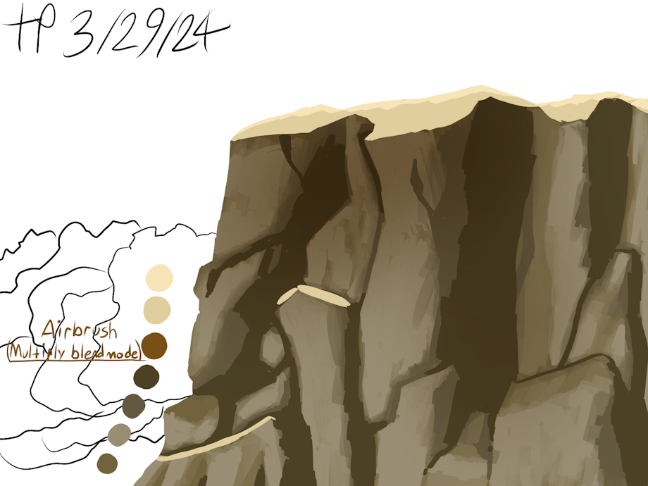 Recently, I think I've found a better, yet decent, approach for sketching rocky surfaces now: