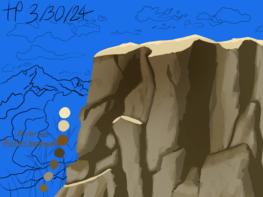 Most of the colors I used for the clouds, mountains, and trees were re-used from some of the previous BG practice illustrations I made. They were determined by saturation and mood using the hue shifting method(which is usually for pixel art).
