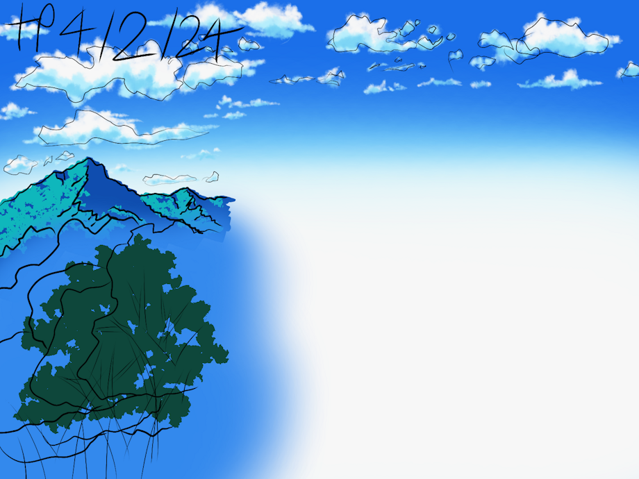 Most of the colors I used for the clouds, mountains, and trees were re-used from some of the previous BG practice illustrations I made. They were determined by saturation and mood using the hue shifting method(which is usually for pixel art).