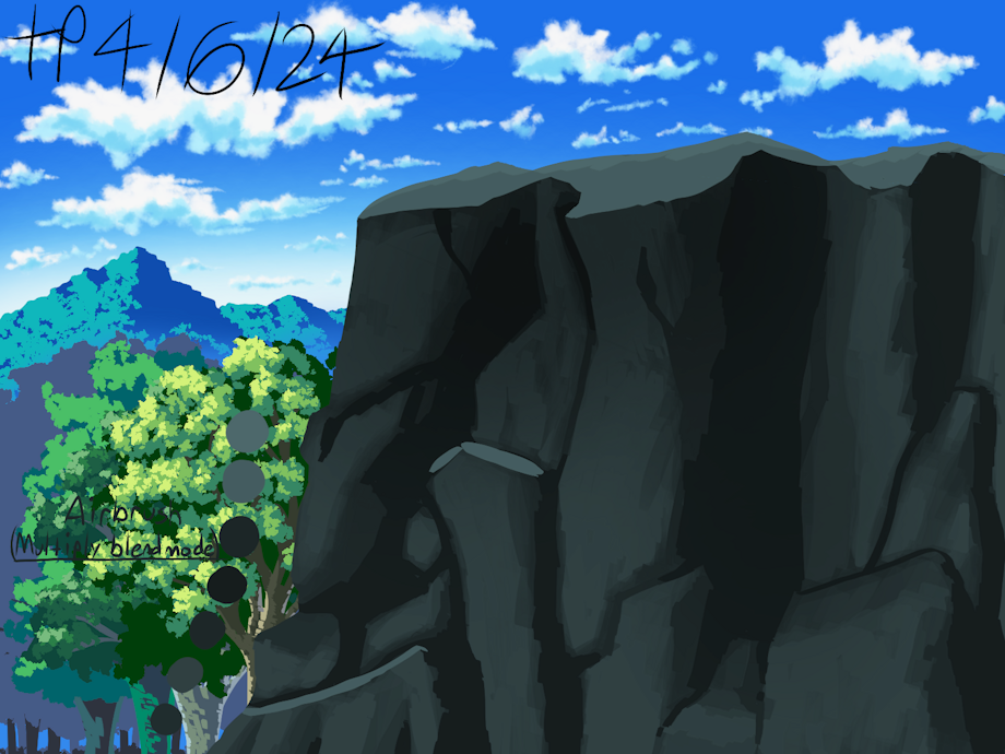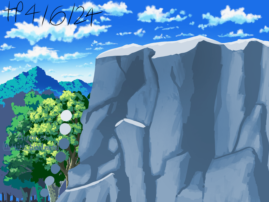 Most of the colors I used for the clouds, mountains, and trees were re-used from some of the previous BG practice illustrations I made. They were determined by saturation and mood using the hue shifting method(which is usually for pixel art).