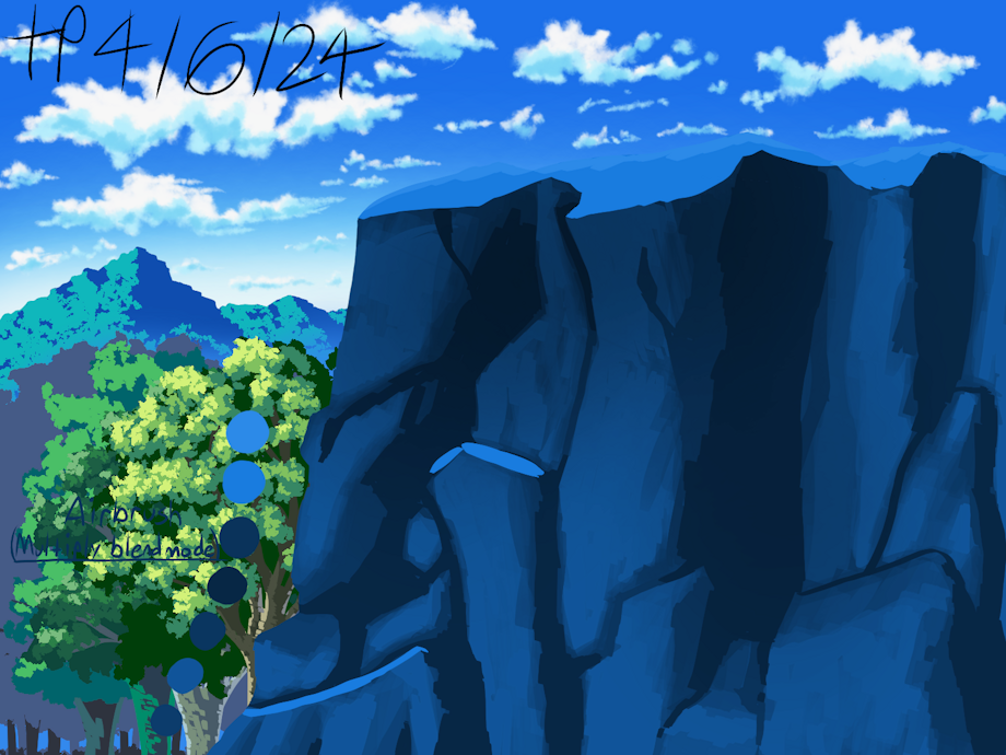 Most of the colors I used for the clouds, mountains, and trees were re-used from some of the previous BG practice illustrations I made. They were determined by saturation and mood using the hue shifting method(which is usually for pixel art).