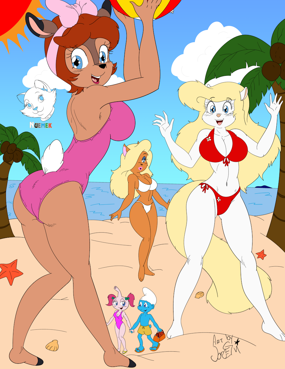Fawndeer, Minerva and Kitten Kaboodle on the beach (color)