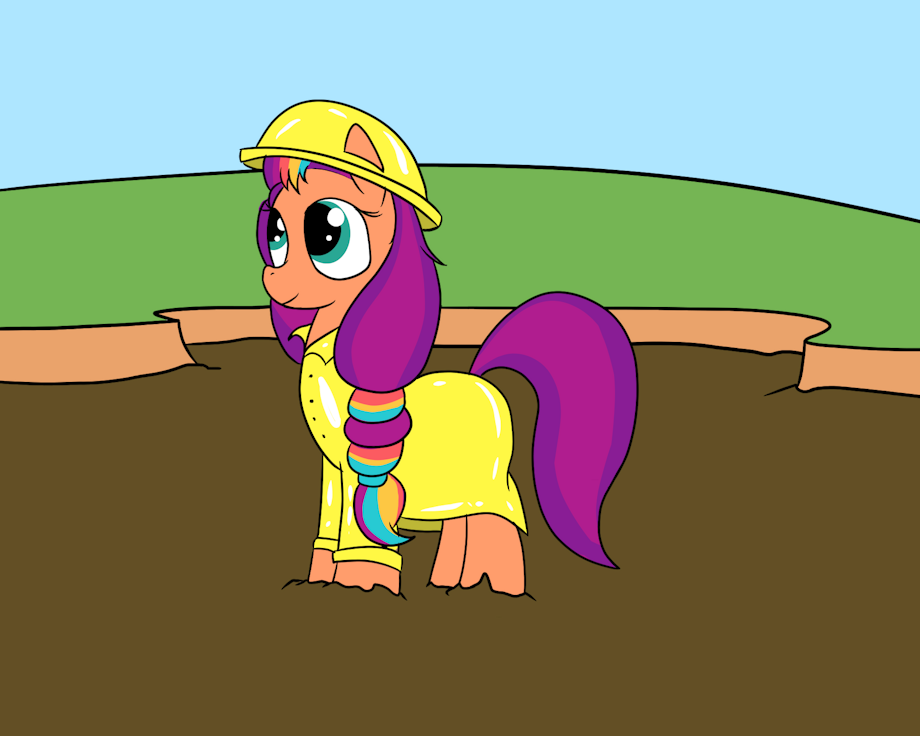 Sunny Starscout in a yellow pvc raincoat in mud (clean)