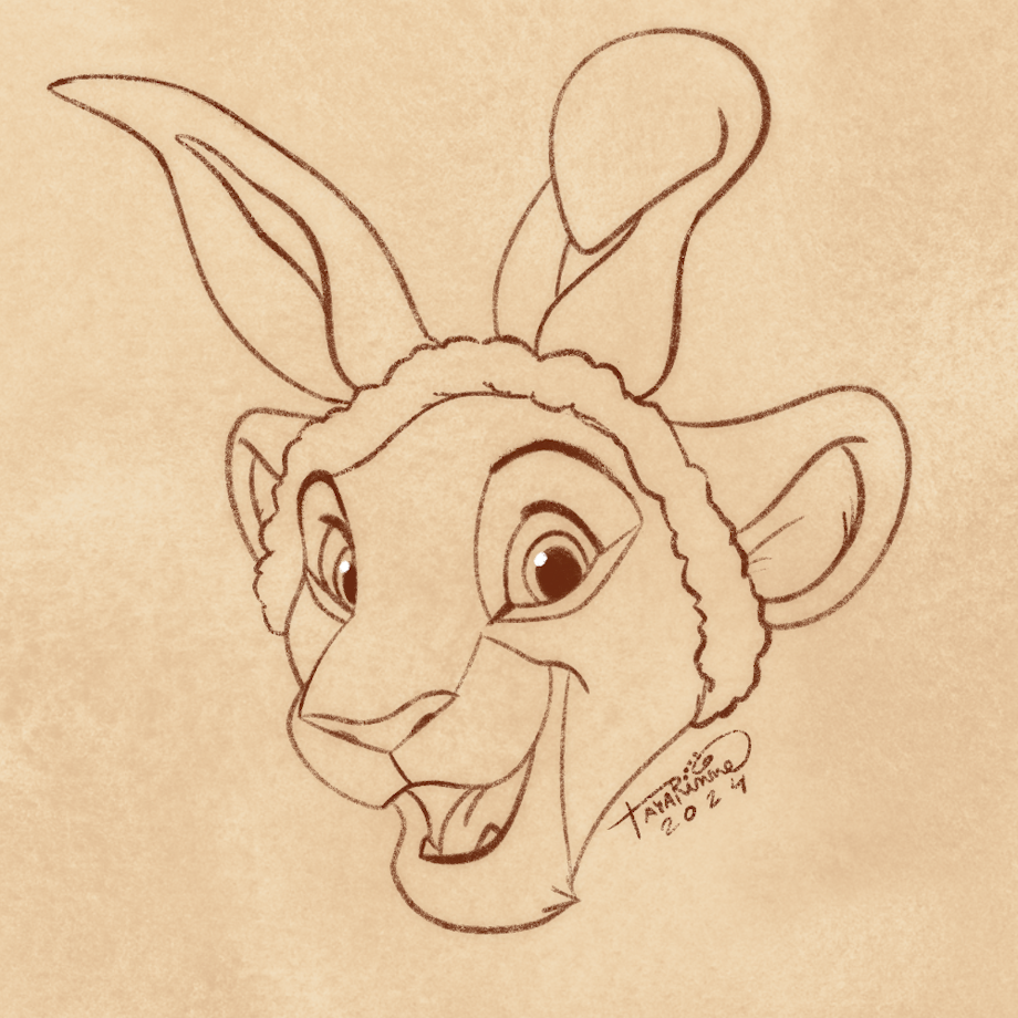April patreon sketch for Zariel - Nala wearing bunny ear headress. 🐇