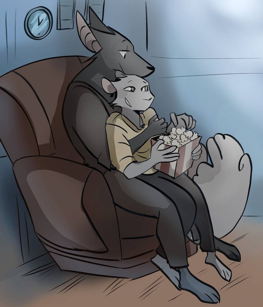 Dusk and James enjoying a quiet movie night together. What do you think they're watching?