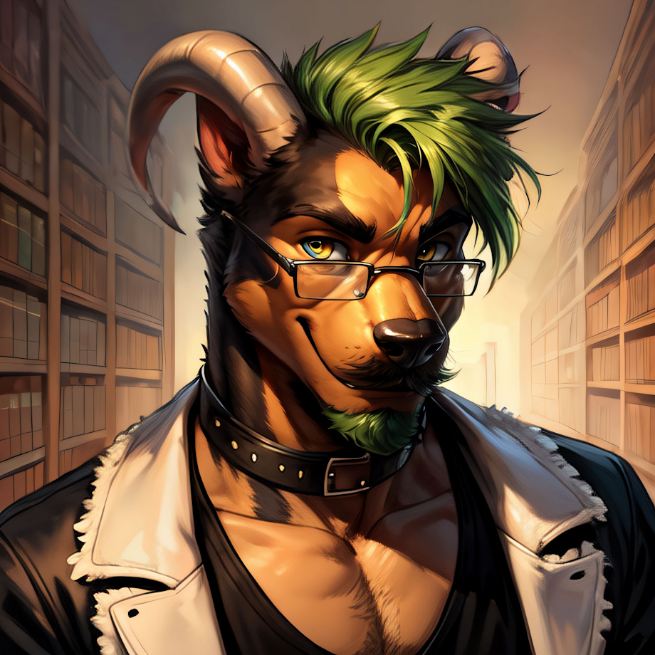 masterpiece, best quality, ultra high detail <lora:(1) Furtastic Detailer:1> <lora:fluffyrock-quality-tags-v4.rc11.5:1> best quality, good quality, BREAK <lora:(S) epi_noiseoffset2:1> dark studio, rim lighting, two tone lighting, dimly lit, low key, (feudal lord's outfit:1.3) (evil smirk:1.3) (pettycoat:1.3) EasyMalePortrait BREAK A (male:1) (houndoom:1) with a (slim body:1), (glasses:1.3) (curved horns:1), (long green hair:1.3), (yellow eyes with black pupils), and wearing a (silver collar with skull:1). The male houndoom has (solid black fur:1.3), a (black tail with a forked end:1) Negative prompt: bulge, blurry, blurry background, bad anatomy, bad hands, three hands, three legs, bad arms, missing legs, missing arms, poorly drawn face, bad face, fused face, cloned face, worst face, three crus, extra crus, fused crus, worst feet, three feet, fused feet, fused thigh, three thigh, fused thigh, extra thigh, worst thigh, missing fingers, extra fingers, ugly fingers, long fingers, horn, realistic photo, extra eyes, huge eyes, 2girl, amputation, disconnected limbs, worst quality, normal quality, low quality, low res, blurry, text, watermark, logo, banner, extra digits, cropped, jpeg artifacts, signature, username, error, sketch ,duplicate, ugly, monochrome, horror, geometry, mutation, disgusting, jpeg artifacts, bad quality, jpg artifacts,badhandv4, easynegative nsfwEM, boring_e621_v4 Steps: 35, Sampler: Euler a, CFG scale: 7.5, Seed: 1564859439, Size: 768x1152, Model hash: dd61eb284b, Model: yiffymix_v36, VAE hash: 235745af8d, VAE: kl-f8-anime2.vae.safetensors, Denoising strength: 0.43, CFG Rescale: 0.7, ADetailer model: face_yolov8n.pt, ADetailer confidence: 0.02, ADetailer dilate erode: 4, ADetailer mask blur: 4, ADetailer denoising strength: 0.4, ADetailer inpaint only masked: True, ADetailer inpaint padding: 32, ADetailer version: 24.1.2, Resharpen: 0.4, Lora hashes: "(1) Furtastic Detailer: 2e94914f676c, fluffyrock-quality-tags-v4.rc11.5: 354a0197f497, (S) epi_noiseoffset2: d1131f7207d6", TI hashes: "EasyMalePortrait: 825a05e5a000, badhandv4: 5e40d722fc3d, easynegative: c74b4e810b03, nsfwEM: 8bf4ae51efdf, boring_e621_v4: f9b806505bc2", Version: v1.6.0 |