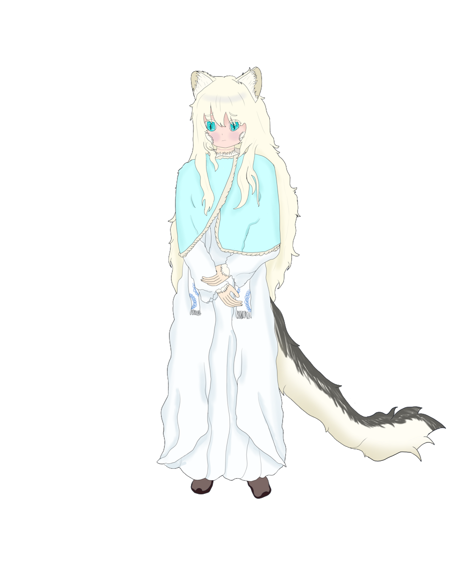 Nylin enjoys long, thin clothing, her fur makes her get hot quite easily but she dow try to keep covered more often than not.