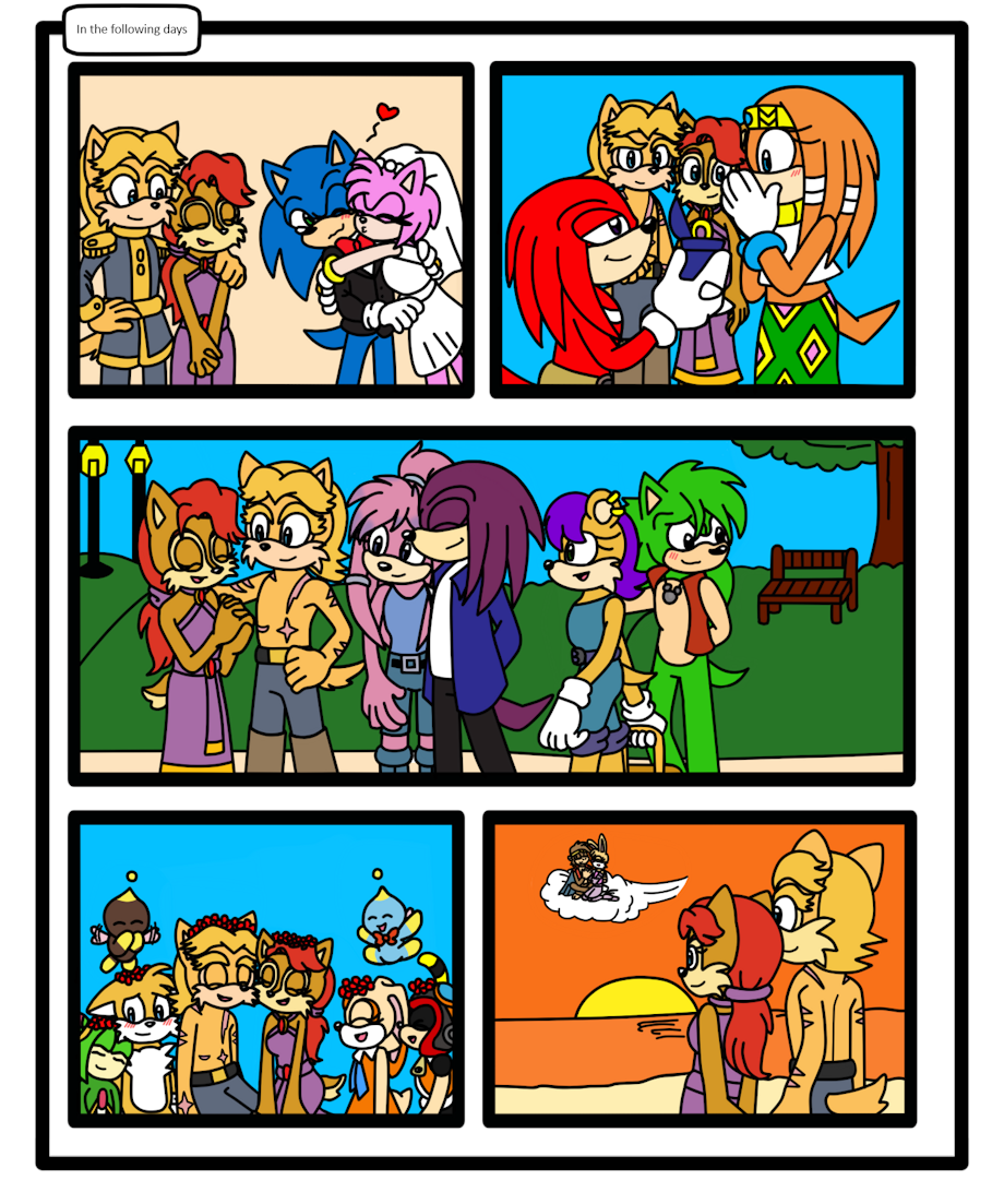 In the following days Antoine and Sally, in their free time, decide to spend time with their friends, where among several things: They attend Sonic and Amy's wedding; they witness Knuckles' marriage proposal to Tikal; they take a walk in the park with Julie-Su, Ralph, Mina and Manic; they spend time with Cosmo, Tails, Cream, Charmy, Cheese and Chocola; and finally they see Monkey Khan and Bunnie flying through the sky on a cloud.