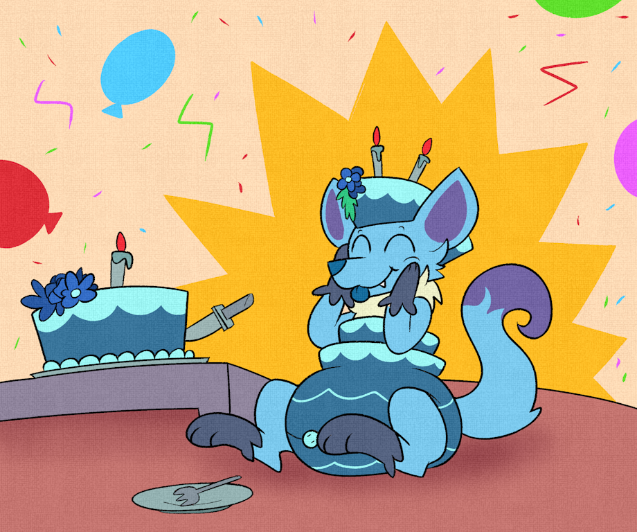 I have to wonder though... what type of Flavour is that cake? Blueberry perhaps? Maybe something flowery? Let's see if we can get a slice before Wisper eats it all.