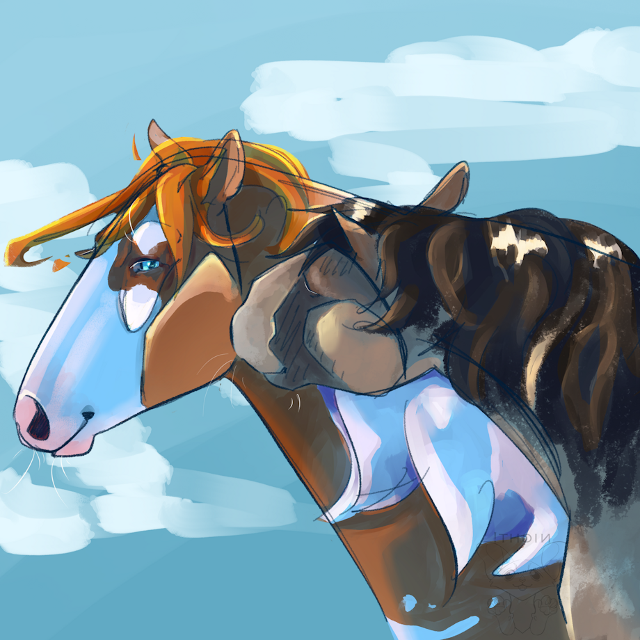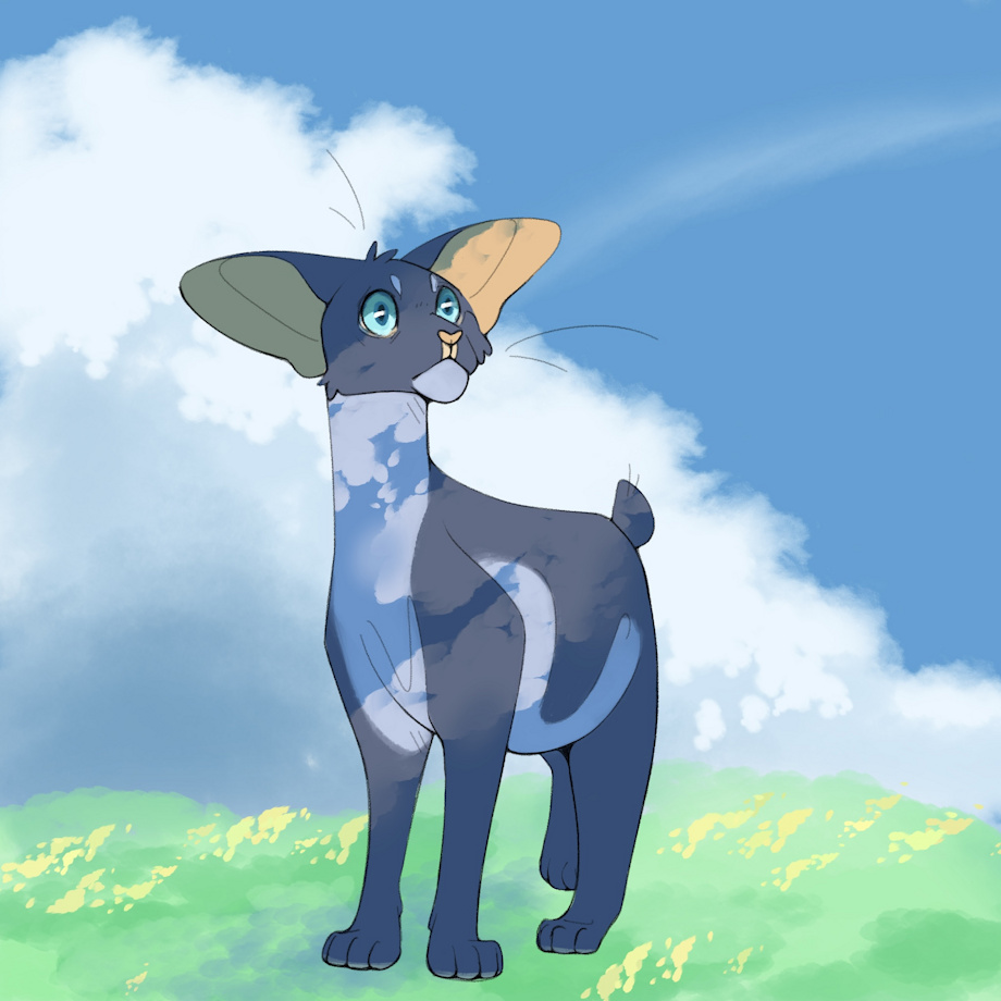 my boyfailure of a warrior cats oc feat. a bg made with the new devin elle kurtz cloud brushes! this was more of an experimental doodle but it turned out pretty okay and want to share it! :D