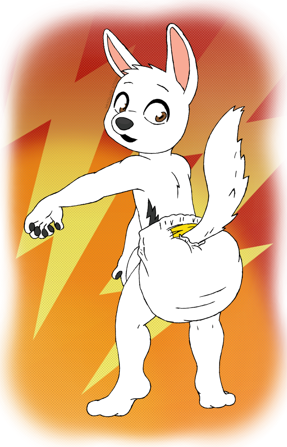 of Bolt, from the movie of the same title, but as an anthro puppy. As comfy as it is, he's confused as to why they basically taped a pillow to his bottom.