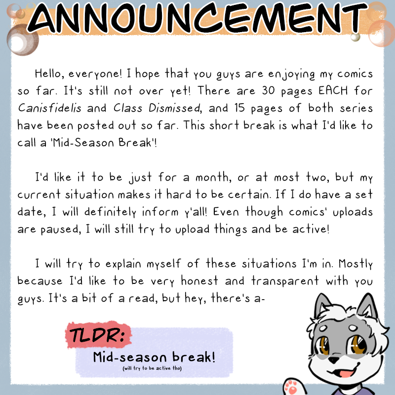 Like in the post, even though the comics postings will be paused, I'll still try my best to keep being active! Love y'all <3