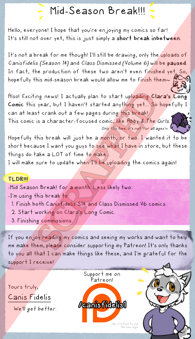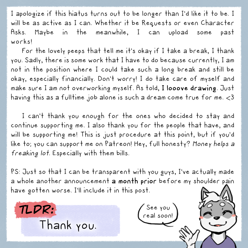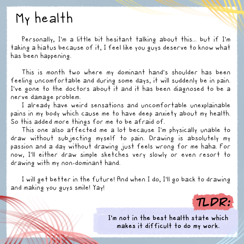 Just want to catch up with you guys and tell what has been going on in my life <3 Like in the post, even though the comics postings will be paused, I'll still try my best to keep being active! Love y'all <3