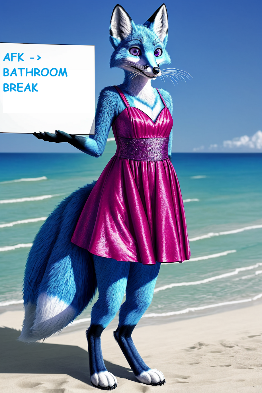 This is my character, AquaVixen. I wanted a picture of her holding up a sign to use for when I'm sometimes live streaming on Twitch. Something I can put text into it and put it up on the screen for when I need to AFK for a moment. So I came up with this with ComfyUI. The original result came out with it putting the word "FOX" in the sign and I thought it was kinda funny so I submitted that one. The second picture is what I use for live streaming if you're curious what the "end result" looks like. --------------------------------------------------------------- This was made possible by modifying the workflow process created by