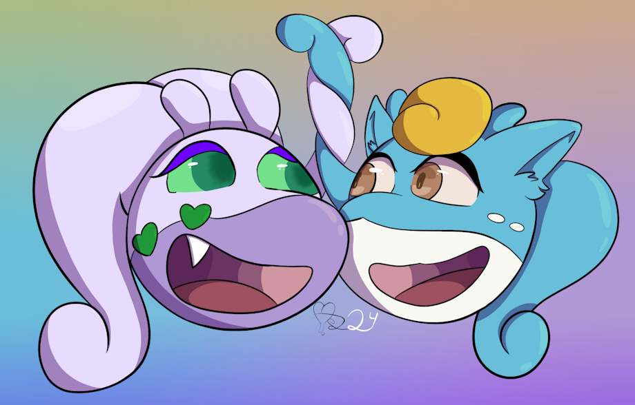 recent art i made for astra. she and i are two gals committing the biggest sin, holding horns