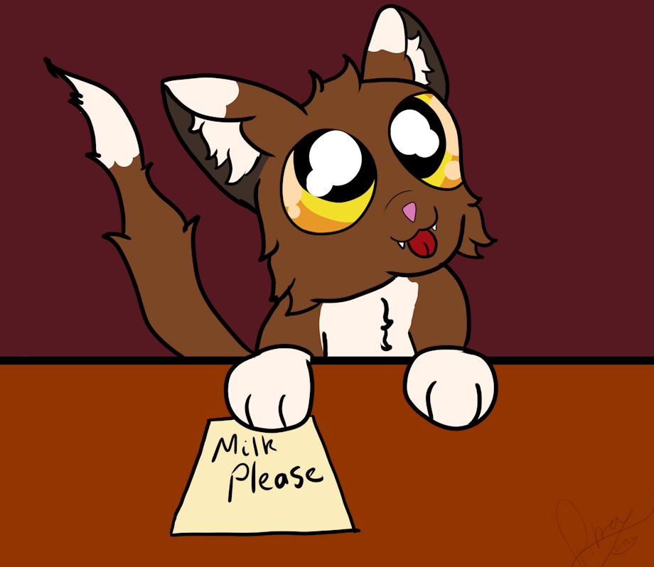 George is a dumpster cat, in the sense he was dumped as a kitten. His eyes are crossed and cannot look in the same direction as each other. He runs a milkbar, where he serves milk for 50 cents a pint or will be on the house in return of a story.