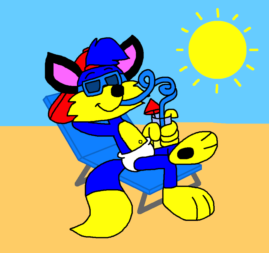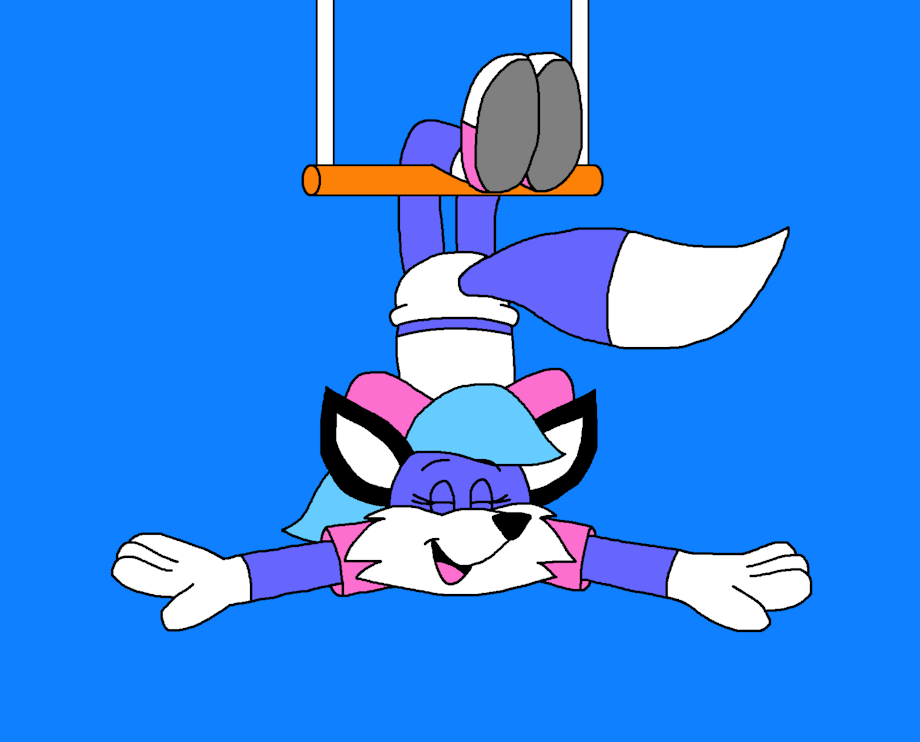 Draw bluebell the fox Hula in long grassy skirts strap waist on shirt, flower crown, flower necklace, eyes both closed
