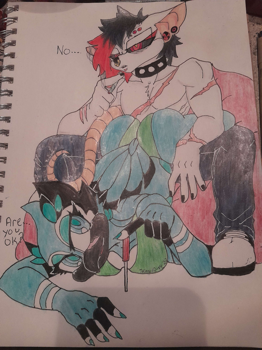 Blue-J trying to make her friend Lucas feel better by spending time with him, he had a hell of a day.