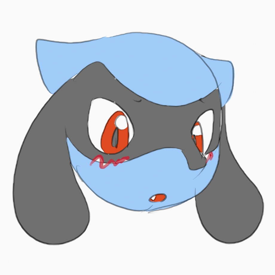 I wanted to do something a bit more... complicated tonight >w> with riolu and lucario... but I was hitting a wall, and I still wanted to post something, so I decided to do just a little thingy here, with some color, since I still need to get more colored stuff in tbh... so yeah here have this blushy lil riolu headshot (emote? idk) heh uwu