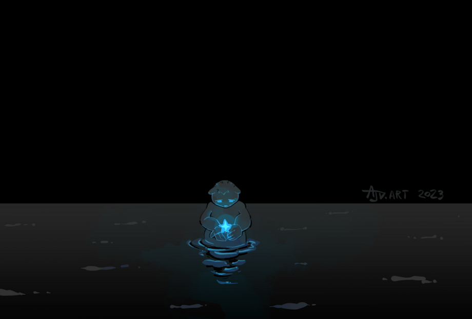 AJ ferret feeling all alone in a universe without starlight. She wants to put it up in the sky for everyone to see, but she's scared. She's so scared...