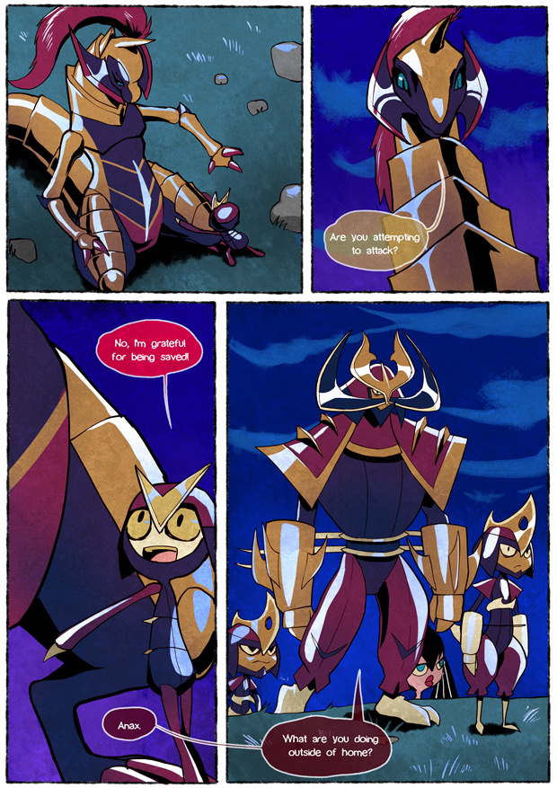 I'm guessing this is why the haxorus was on trial, and felt no guilt about what he had done? His sense of honor wouldn't allow him to stand by and watch as a tinkaton was about to kill someone by surprise who wasn't even injured, even if the pawniard was from the rival faction in this territory dispute. But attacking the tinkaton breaks a non-aggression treaty or something his side has with them, risking a war now?