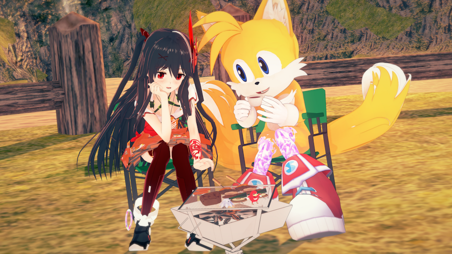 After packing up the fishing gear and tossing it back into the portal, Ni, who had been fishing for half a day without any success and was quite displeased, was now barbecuing with Tails, who was delighted to have fish frantically biting his hook with just a single cast.