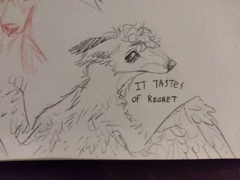 (lyrics accuracy of second sketch is debatable, either "it tastes of regret" or "resist or regret")