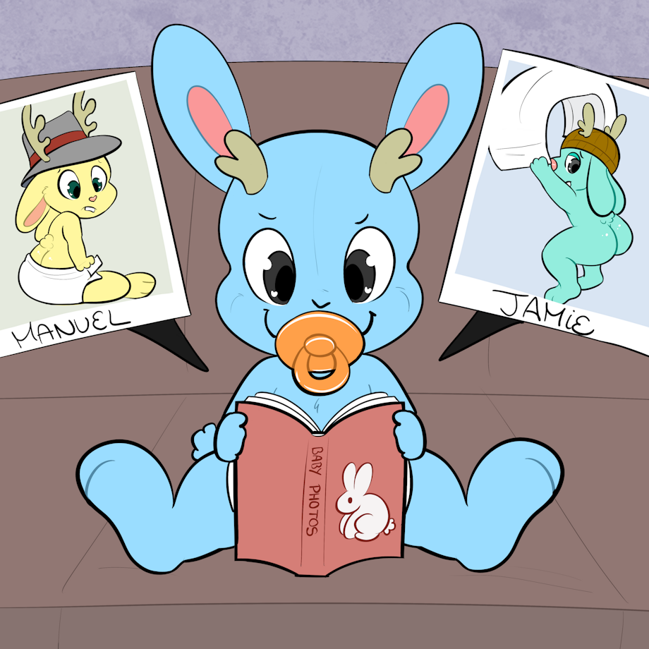 I was commissioned again to make a picture of this cute blue jackalope.. but this time, featuring his brothers as babies, too!