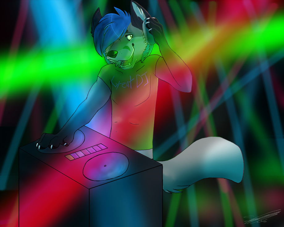 This is something I commissioned a while back during Megaplex 2010. So here we have Takum spinning on the decks and showing his skills to the audience while having a great time. :)
