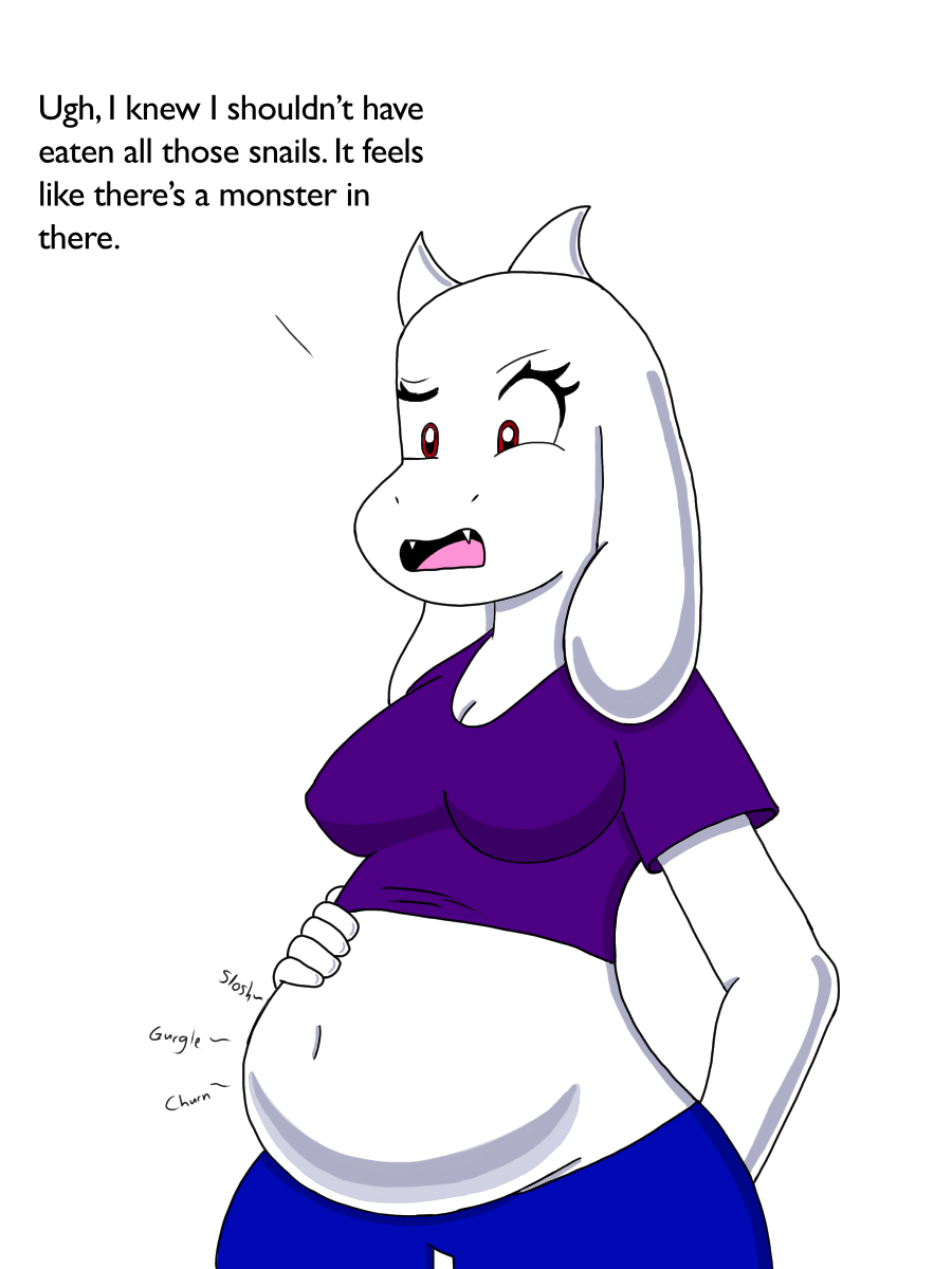 Toriel went to a nice restaurant and ordered a huge plate of snails. However, she didn’t consider how “filling” they were.