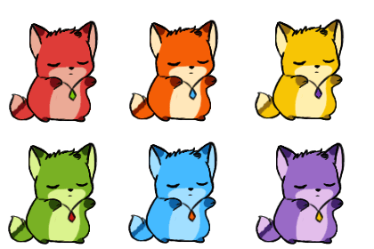 These are the icons for the Rainbow Fox adoptables. You get one free when you adopt the character for $5 (getting the reference sheet). You can request changes on the ref sheet to accentuate your chosen gender and hairstyle.