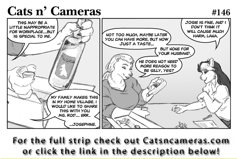 This week Lana introduces Josie to the good stuff, though I doubt she knows Jo’s technically no old enough to drink (20) . Kudo’s to those of you who can get the name of the Vokda with out googleing it. More to come as always, thanks again for all your awesome comments. See you again, next week, Same cat time, same cat channel (ducks punch).. Gah yes I know old bad joke.