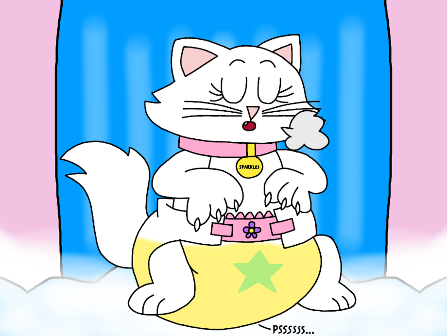Princess Sparkles sighing in relief as she pees her diaper.