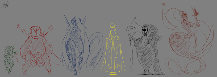 So I was chatting in a discord server about Zelda and how much of a flustercluck the lore is, and was thinking about how to untangle it or possibly just... do one's own thing with it. So I mused on an idea of a Zeldalike where each of the characters was recognizable but distinct from their counterparts and I decided to doodle them up!