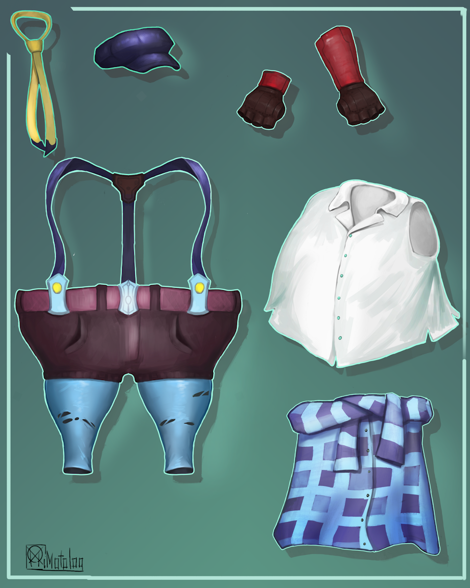 It's an outfit that is inspired by cyberpunk works and street fights in video games, wanting something eye-catching and which highlights the style that I have in mind for my universe, wanting clothes that stand out as much as the characters who wear them.