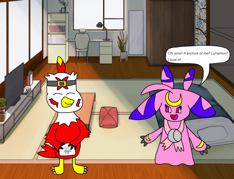 Hawkmon draws a picture of Lunamon