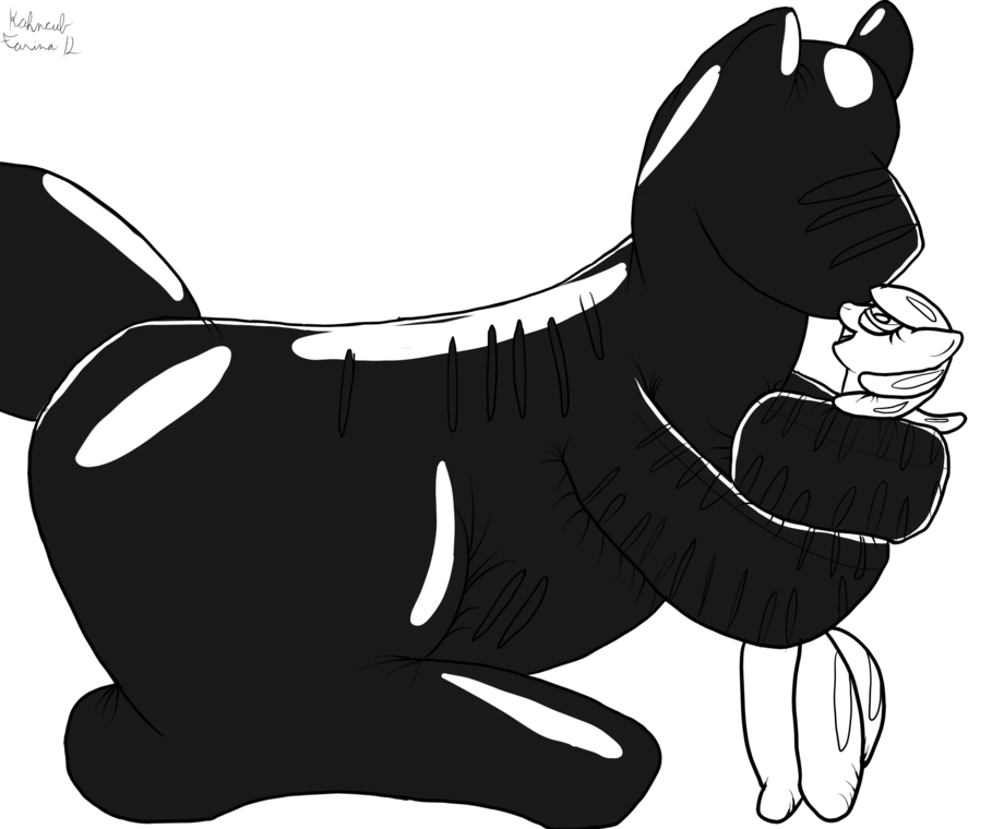 Inked commission for Maple Gleam of herself being snuggled by the giant living latex pony plushie, Blackberry (who if you know Maple is a conversion of Project!)