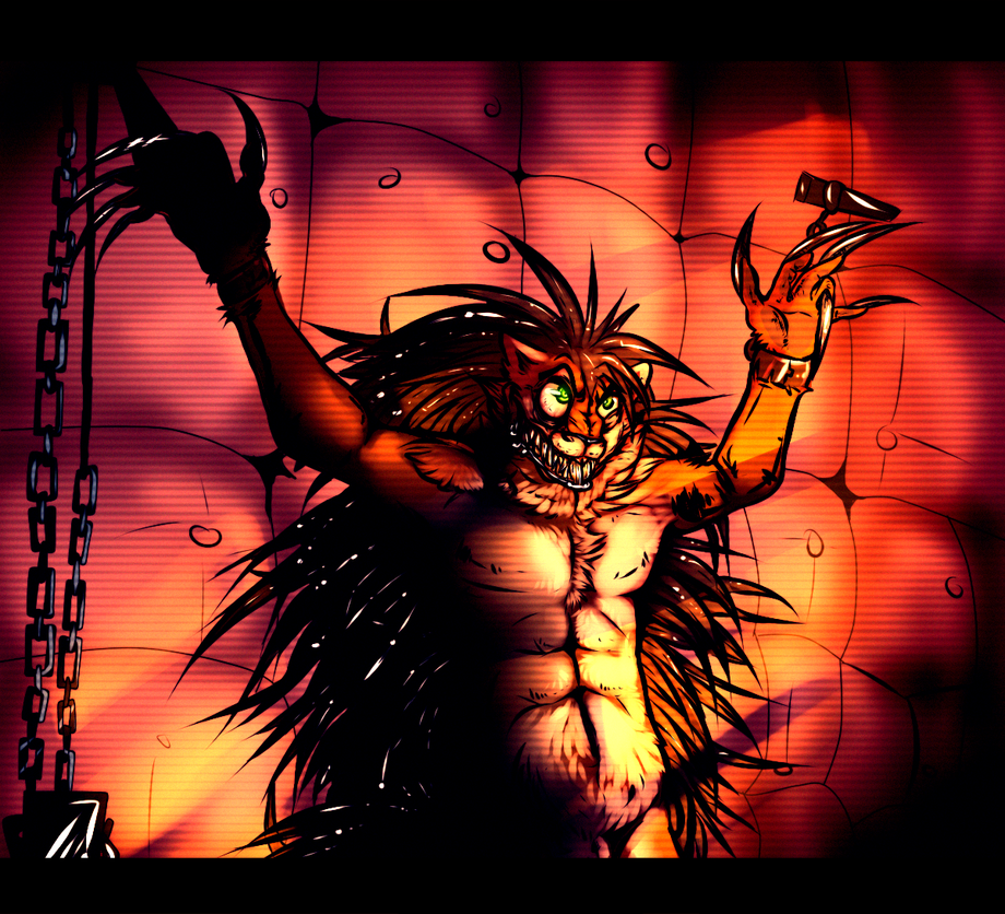 The doctor walks by in the hall, and peers into the still dark padded cell. He seems him standing there, dark toothy grin his quills as disorderly and chaotic as his mind. The doctor wants to walk away but those bright green eyes keep him transfixed as the anthropomorphic Porcupine begins to laugh hysterically.