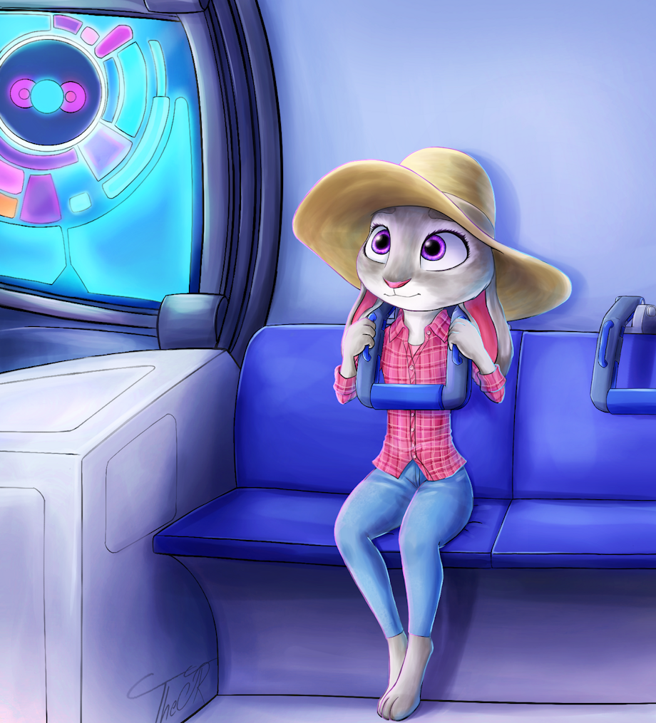 "When Exploring The WALL-B Film Seat, Judy Hopps Enters The Exhaust Capsule Escape Pod. She Sits Down In The Seat &, Out Of Curiosity, Pulled The Shoulder Restraints Down On To Herself, Clutching Them To Help Her Relax, She Spent Some Time Relaxsing In The Seat, Likeing The Look Of The Set,"