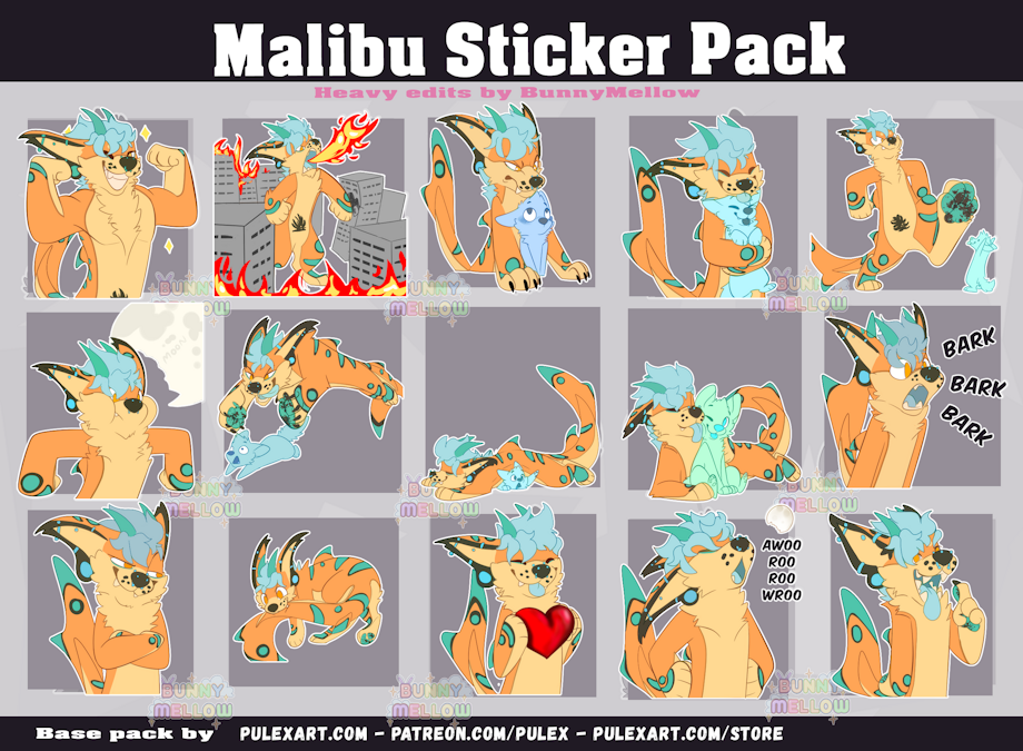 Malibu had heavy edits as he was the monster dog stickers originally I can also print & ship physical copies of the sticker (for personal use only) for +$1/each